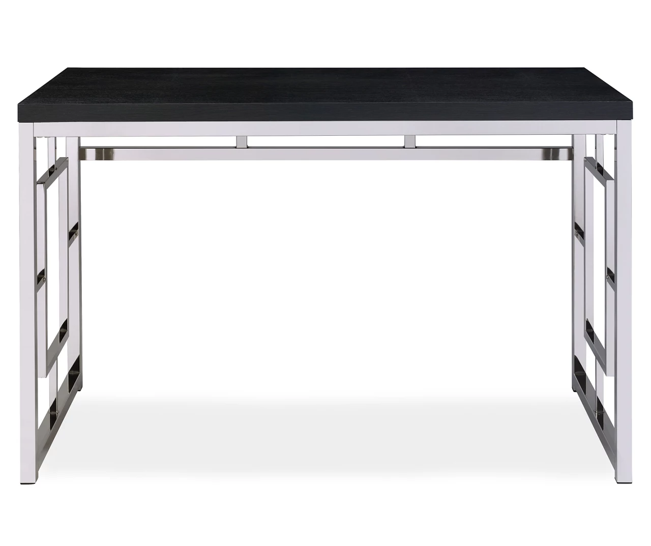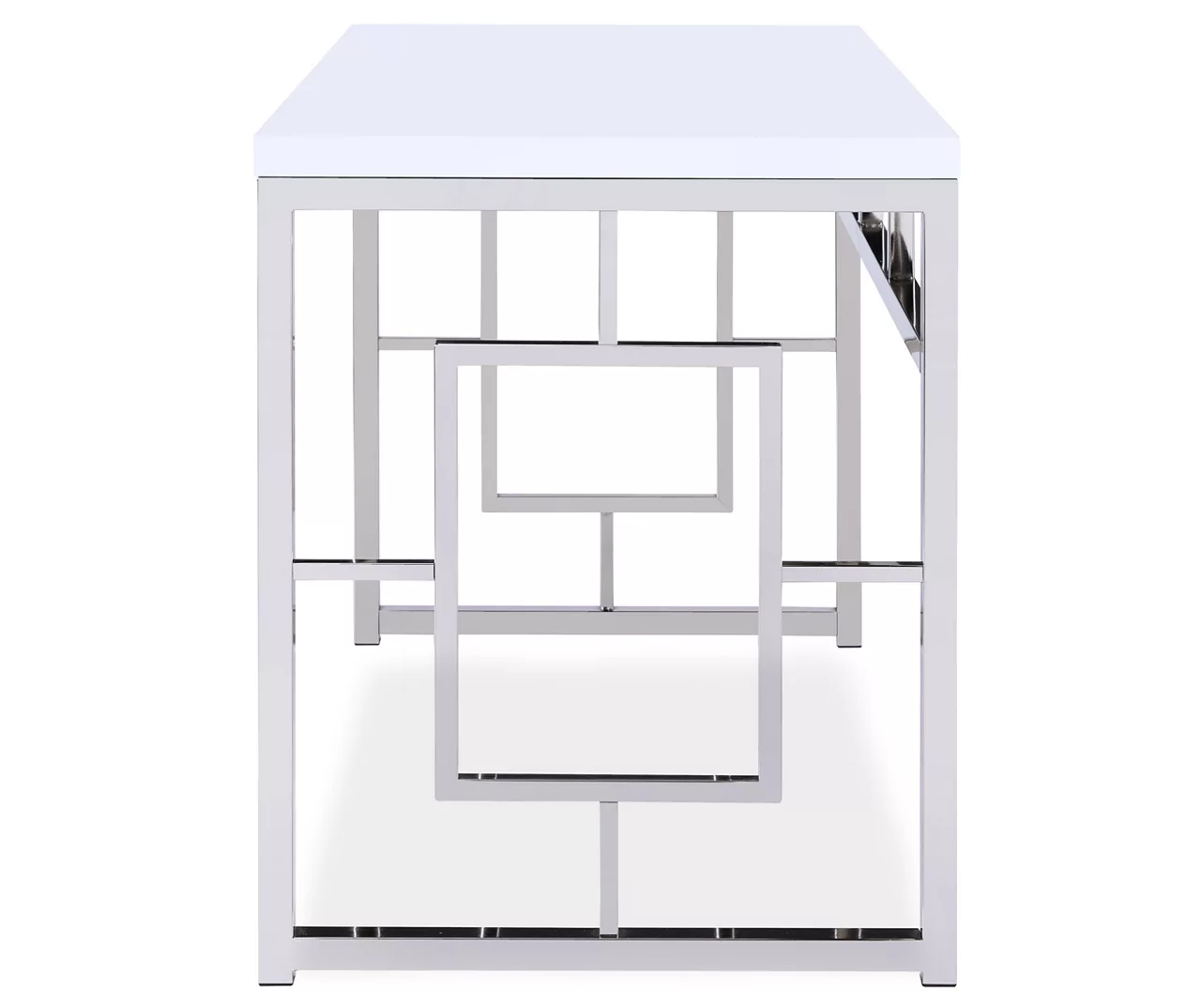 The Alize desk features stunning designs in chrome that encompass modern and artistic styling. The tabletop is constructed of faux wood silvershield laminate in a crisp white finish that resists heat, scratches and moisture. The chrome end panels seamlessly blend with the design of the matching Alize bookcase (sold separately).