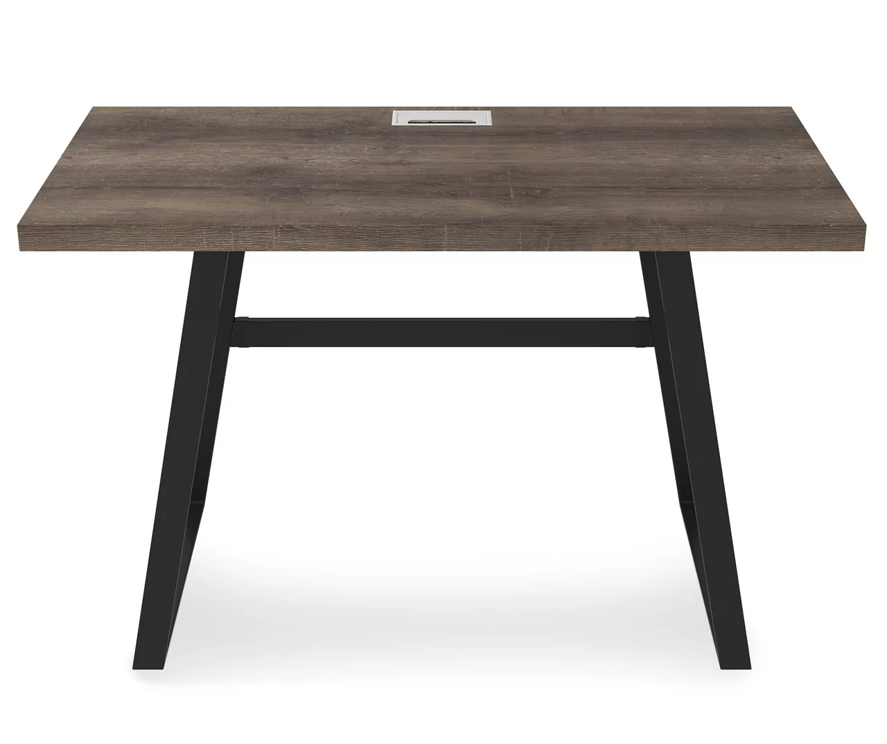 This mixed media home office desk is a fresh style awakening. Sleek scale makes it a natural fit for smaller spaces. Effortlessly combining modern farmhouse design with urban attitude, the replicated weathered oak grain paired with a black powder-coated base plays perfectly with the chic, yet earthy aesthetic.
