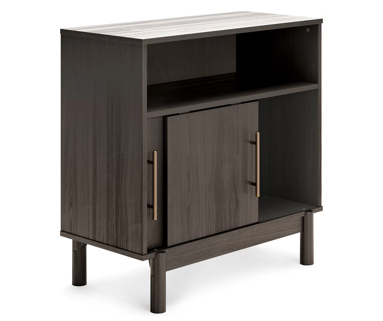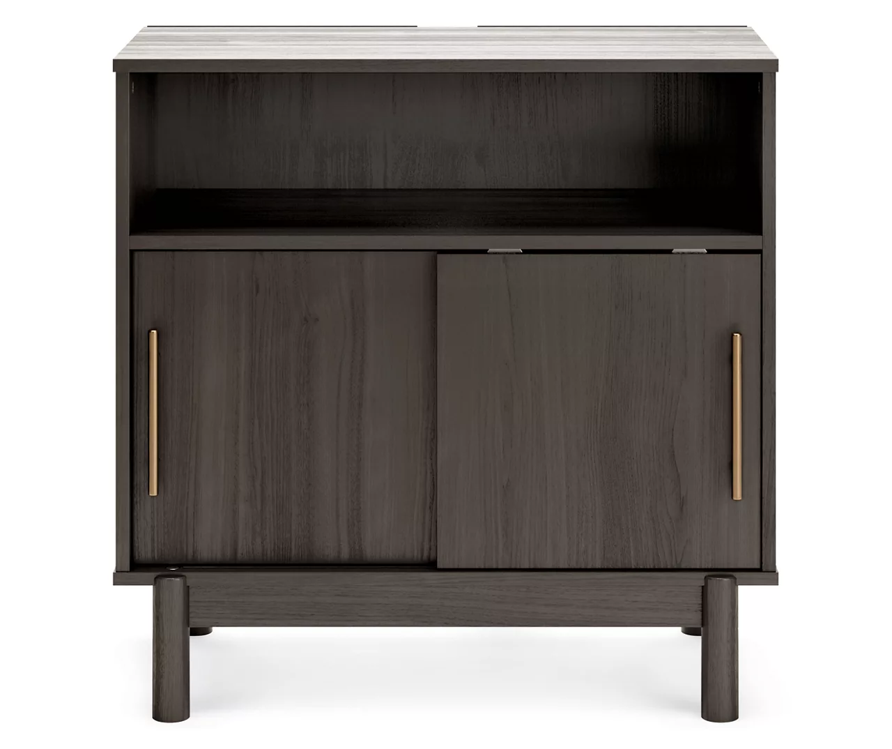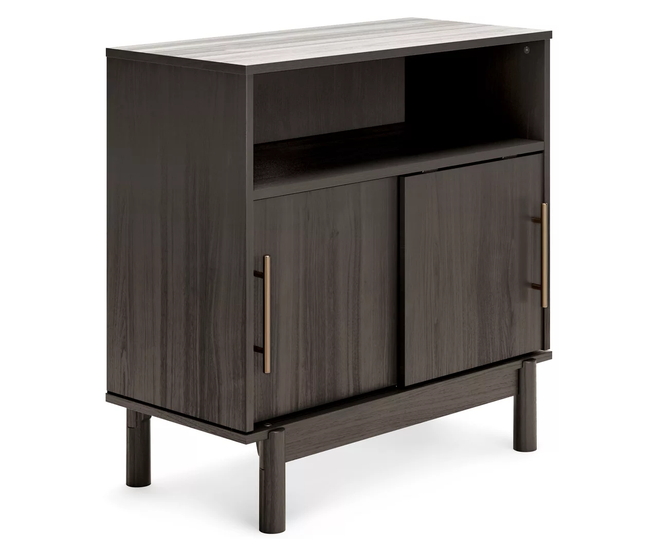 With clean lines evoking a true mid-century spirit, the Brymont accent cabinet creates a sense of modern harmony in your room. The subtle warm gray finish and black burnished gold-tone handles add an authentically modern touch. Elevate your environment to coolly sophisticated.