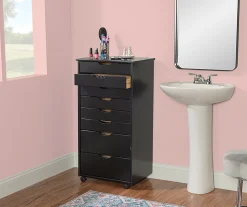 Blending versatility with simple, classic lines, this storage cart makes organizing any busy home or office a breeze. Six equally sized drawers offer ample space for craft supplies, toys or accessories while wheeled casters ensure easy mobility around the space. The natural wood finish brings warmth and visual interest to the piece. Drawers are removable for added convenience.