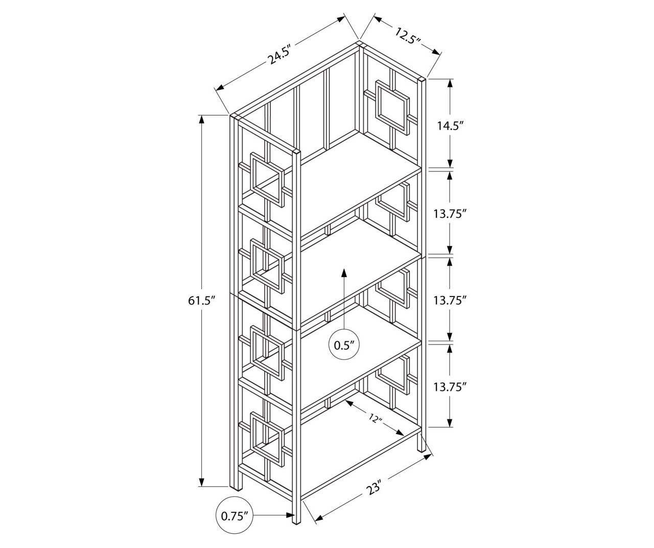 Dark Taupe Square 4-Shelf Open Bookcase