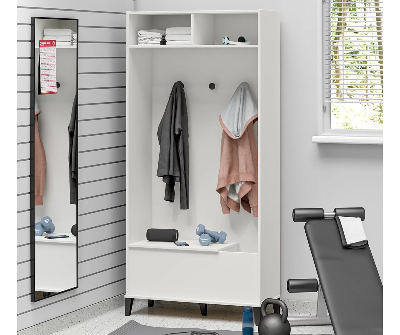 - Flexible gym storage cabinet