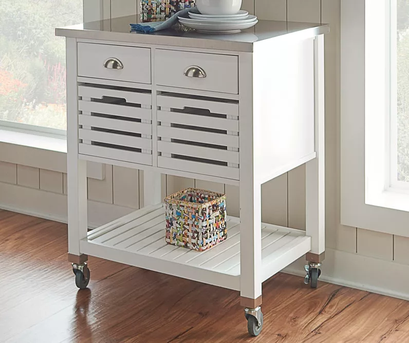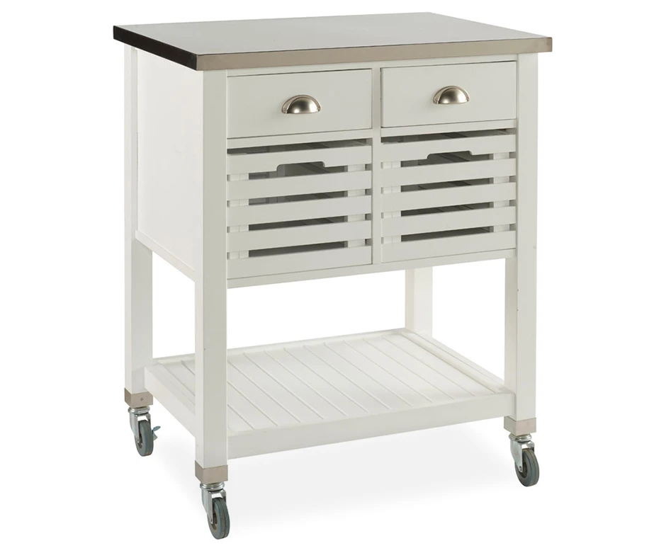 Laurie White Steel Top Kitchen Cart With Drawers