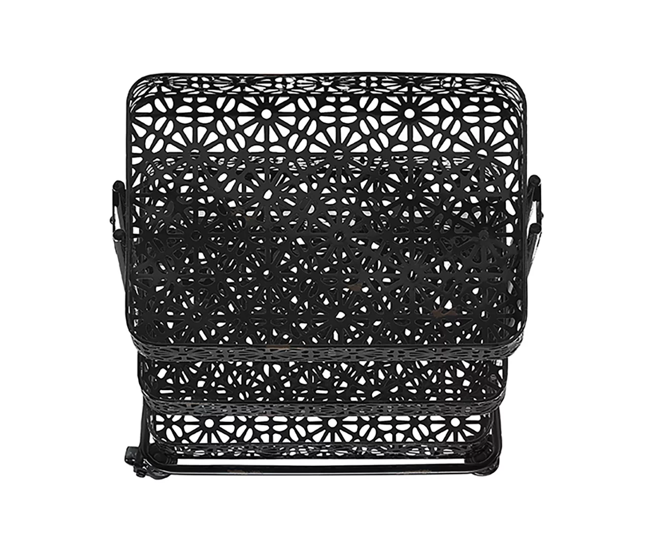 - Offers 3 shelves for ample storage each with a pierced metal floral design