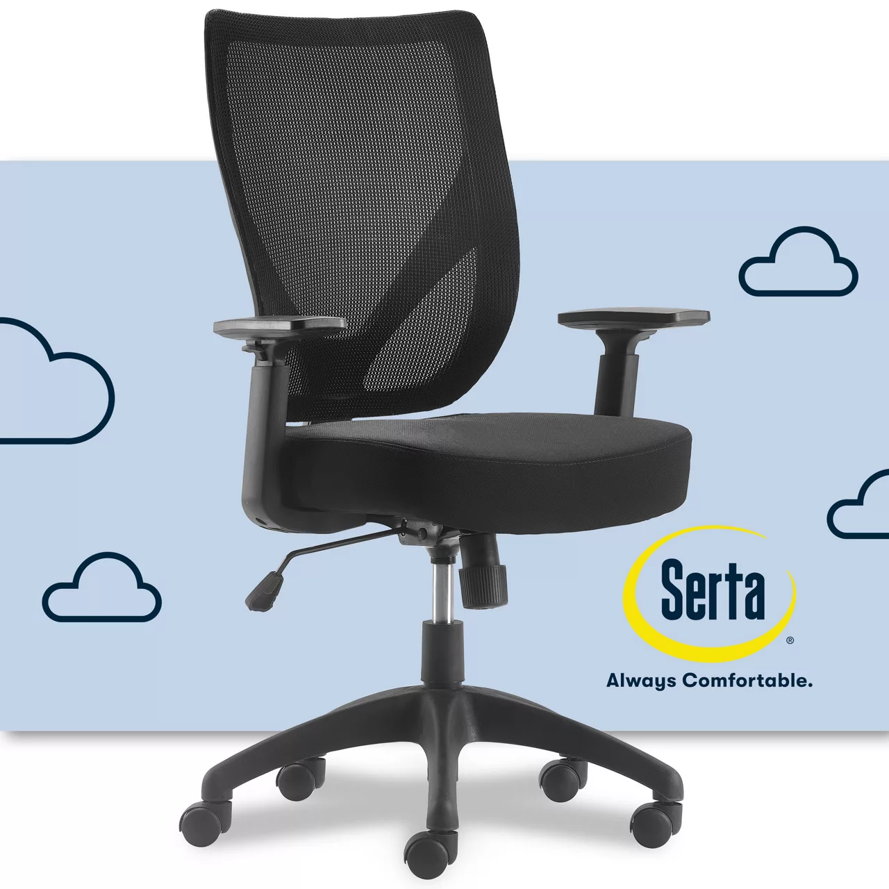 Give yourself a pat on the back with an office chair that supports your back like the Serta Works Production Mesh Office Chair. Innovative and comfort-focused, this computer chair’s thick cushioned seat and lumbar support provide comfort so you can optimize productivity. Its adjustable arms and 360° swivel mechanisms provide freedom of movement while the breathable mesh back promotes air flow for keeping cool under tight deadlines.