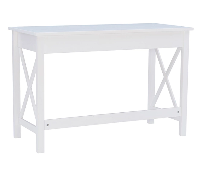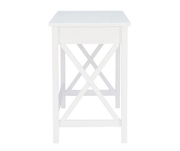 The versatile laptop desk makes good use of space with an ample work and display area. The X side design adds a classy touch to any living room, bedroom, office or entryway. The single, wide drawer provides hidden storage space for small items. An antique white finish allows this piece to easily complement any home décor.