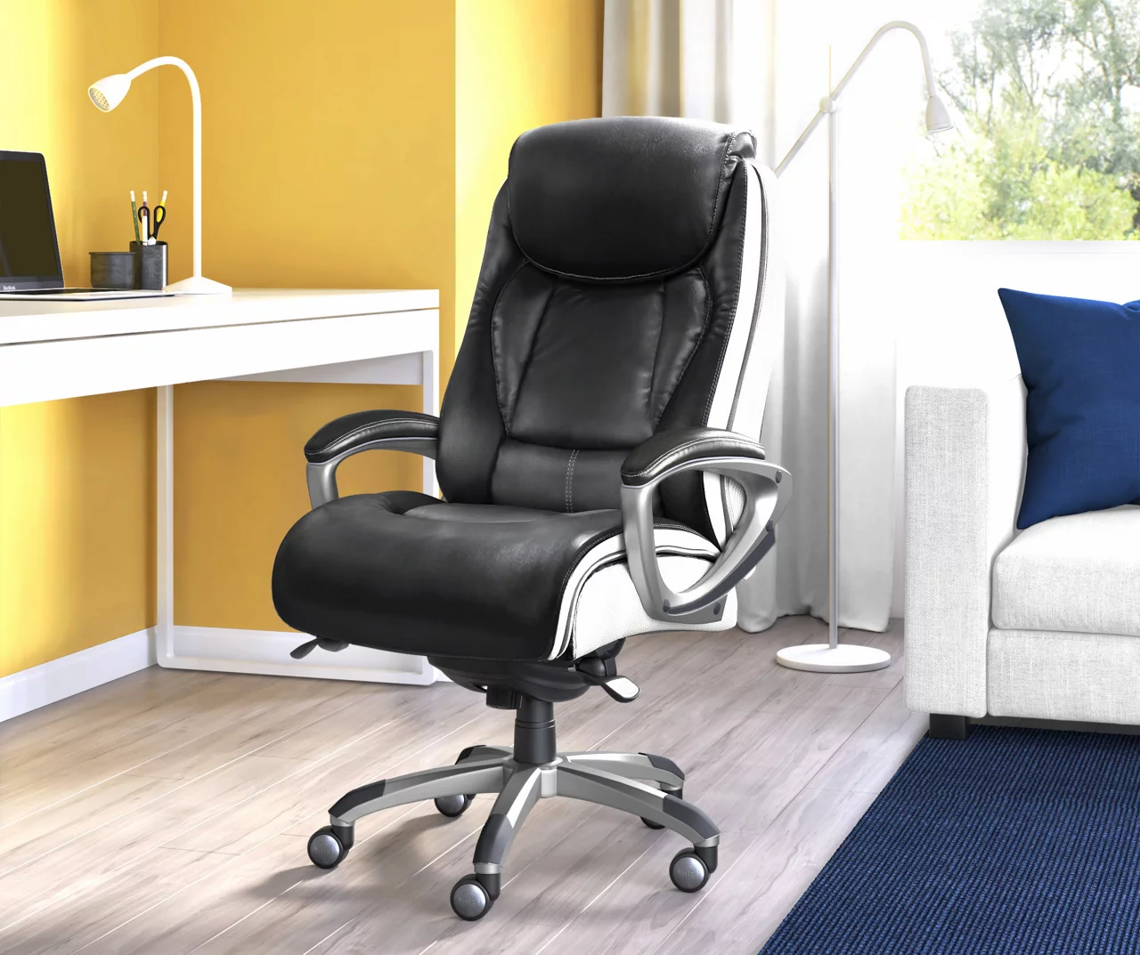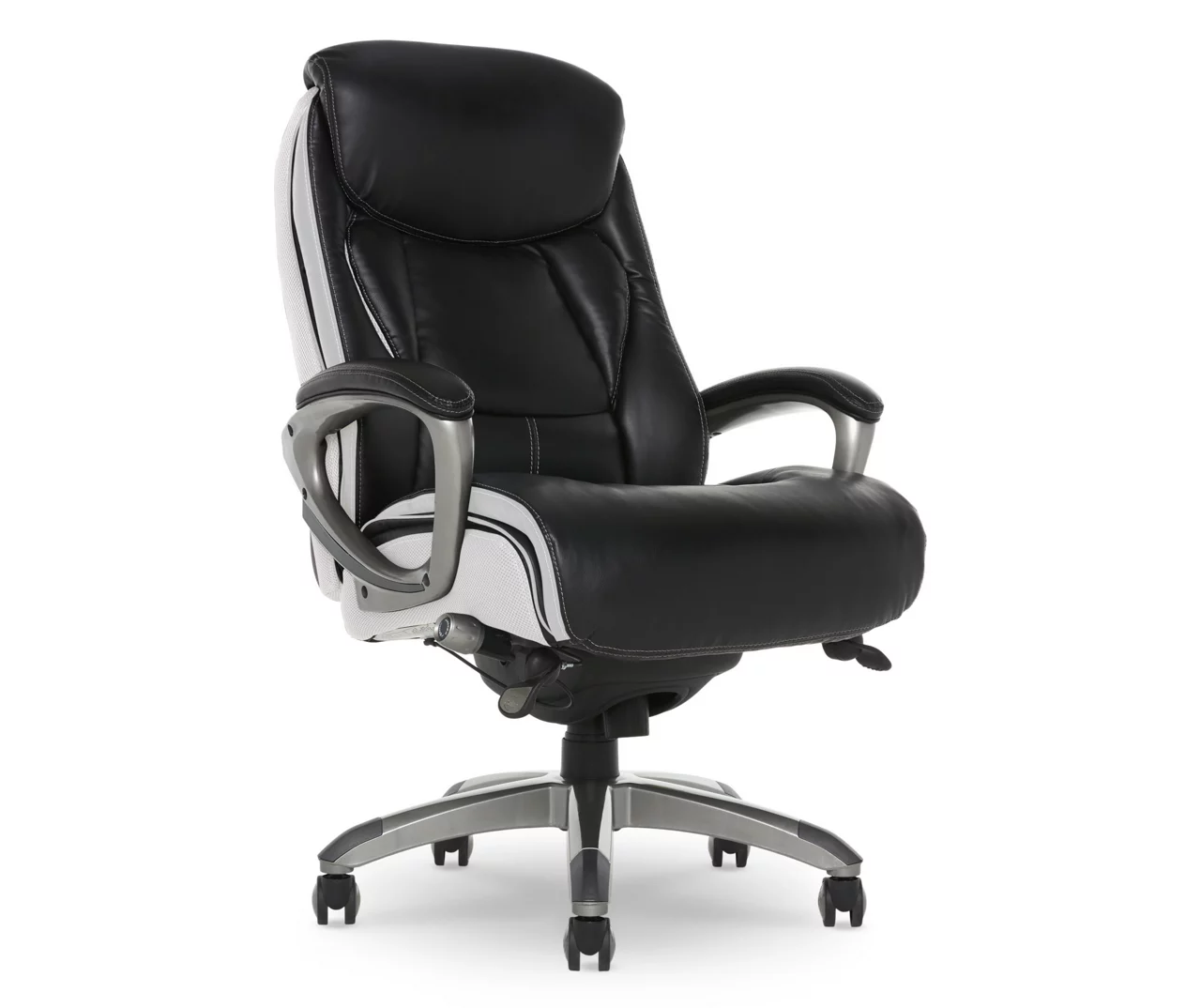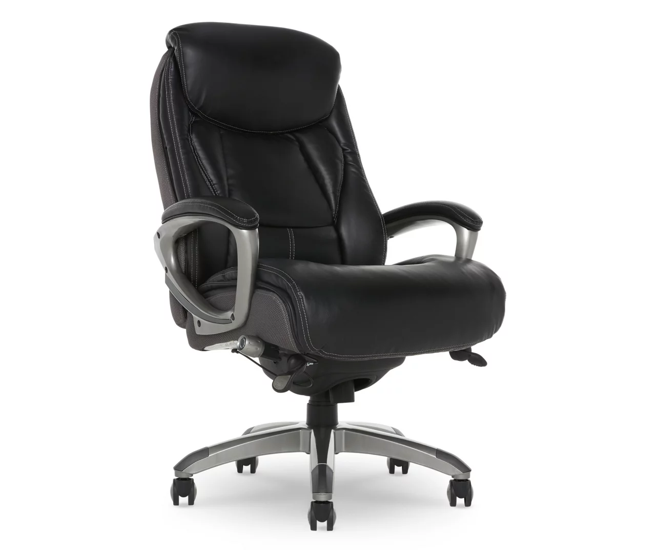 Find a reason to relax during your workday with the Lautner Executive Office Chair from Serta. This ergonomic desk chair has layered body pillows and a pillowed headrest to provide ease while seated for long periods of time. The hand-sculpted arms and smooth bonded leather upholstery have a sleek, professional look that stands out in any work environment. Fully adjustable, this executive office chair allows the user to customize the height and lumbar zone for optimal comfort. This desk chair has a five-layer cushioning system for all day comfort and support.