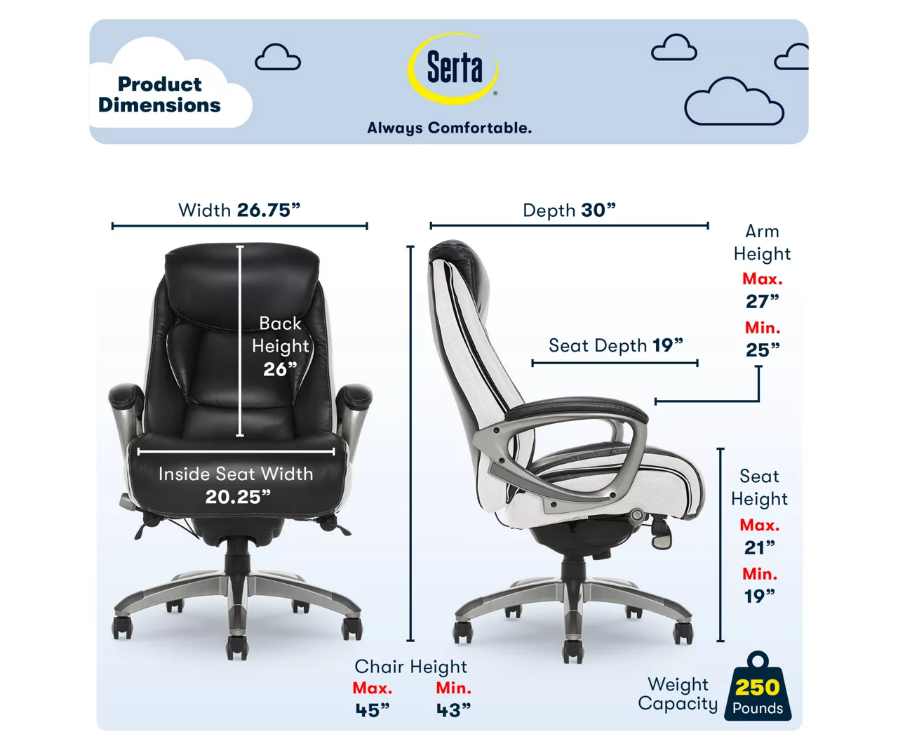 - Product dimensions: 30.0″L x 26.75″W x 45.0″H