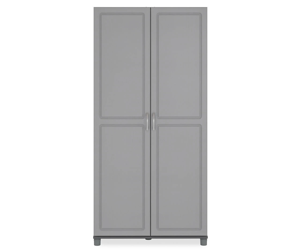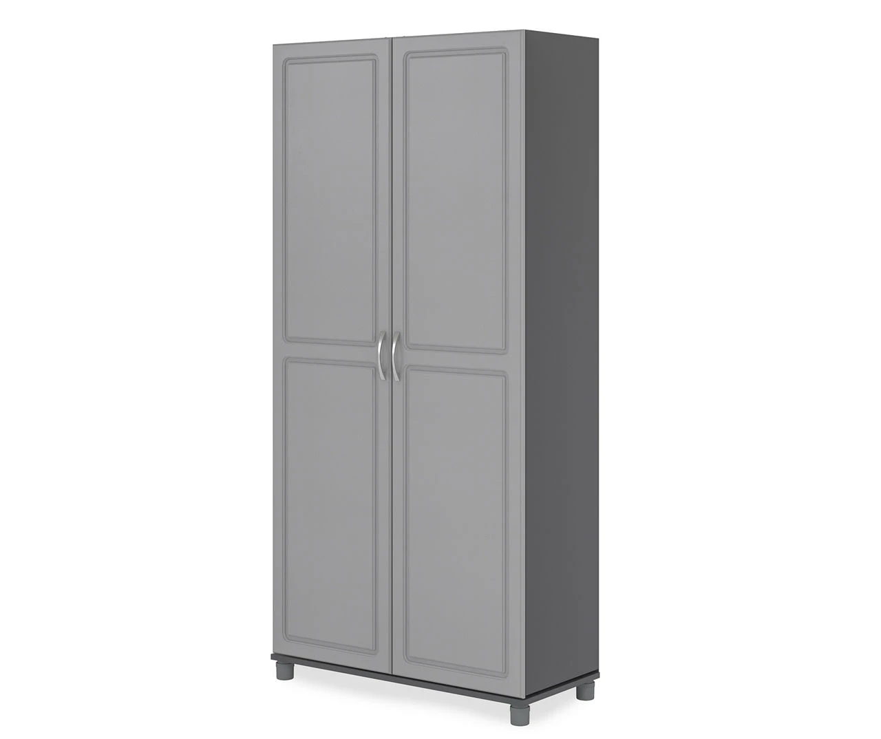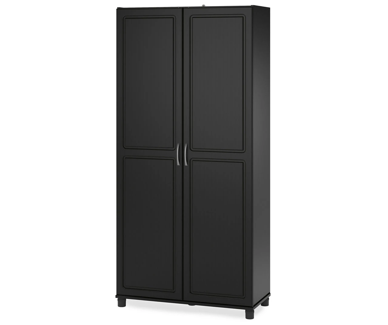 Add extra storage space to any room in your home with the System Build Evolution Ross 36” Storage Cabinet. Made of laminated MDF and particle board, the water resistant black finish is easy to clean so the cabinet can be used anywhere. The interior of this cabinet features five shelves, three of which are adjustable, allowing you to customize your storage for both small and large items. Store and organize anything from office supplies to cleaning supplies and even kitchen pantry items. Soft close hinges are adjustable and prevent slamming doors. The adjustable feet make keeping your Cabinet level on uneven floors simple.