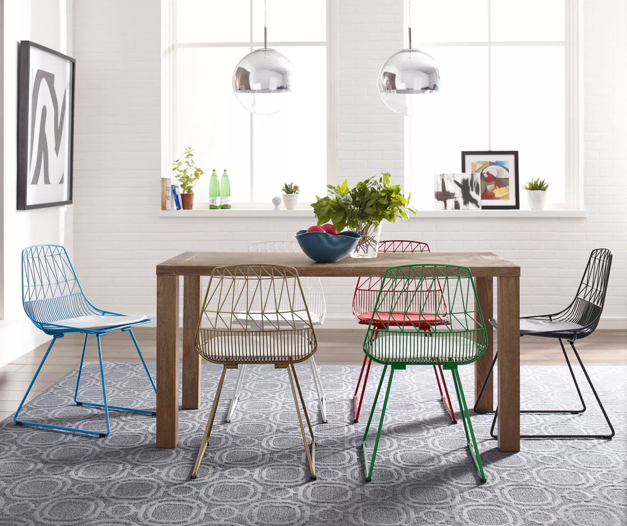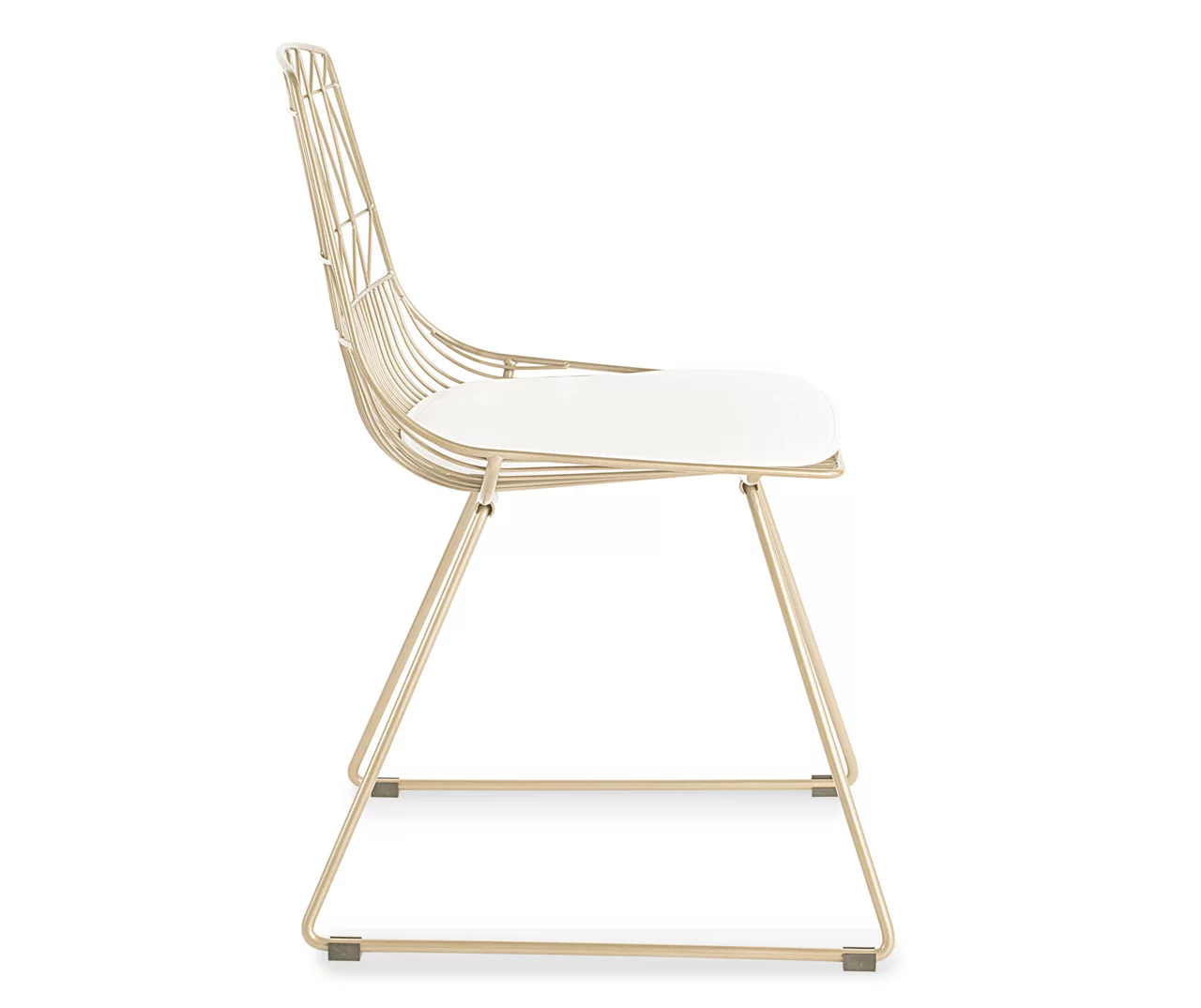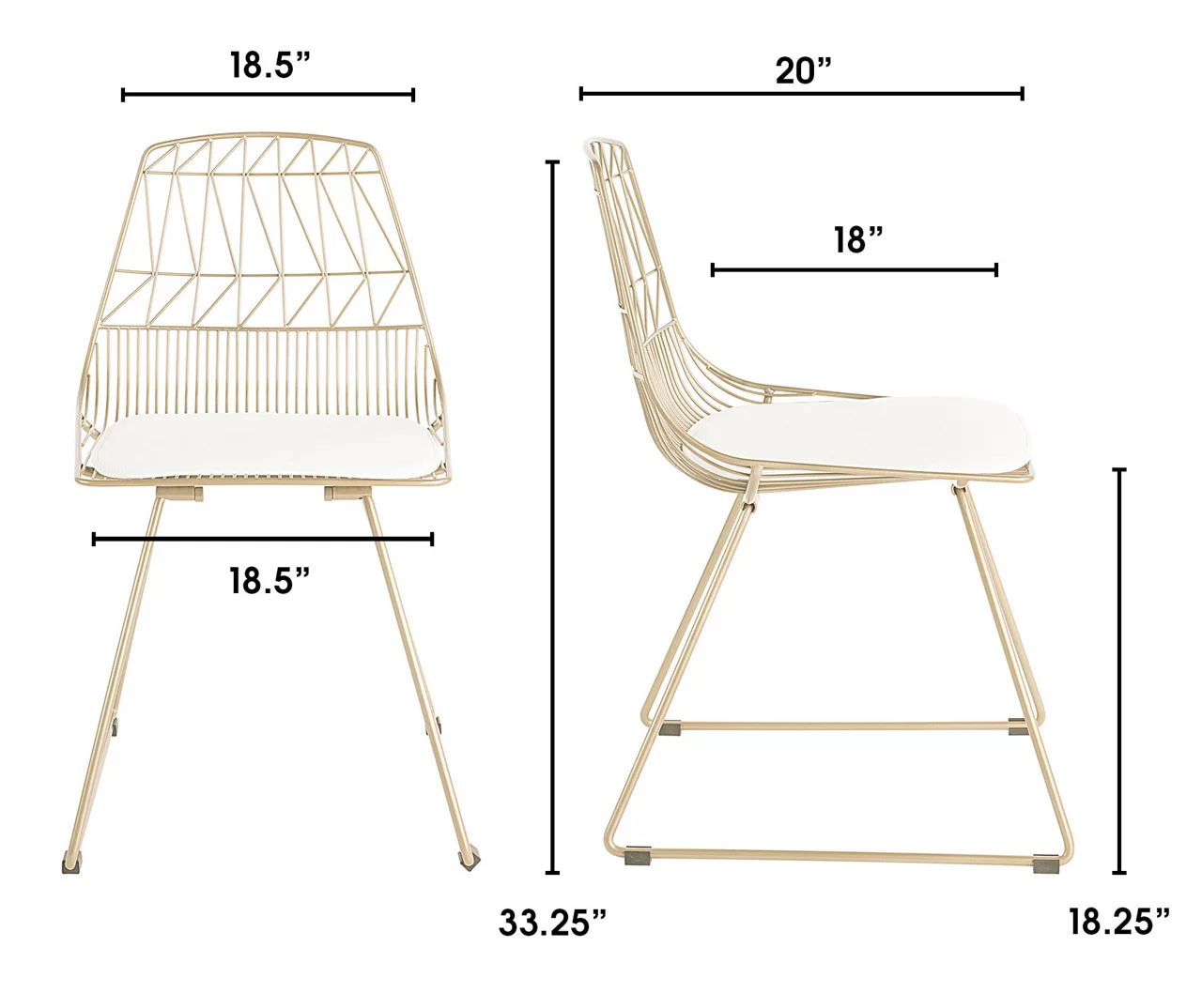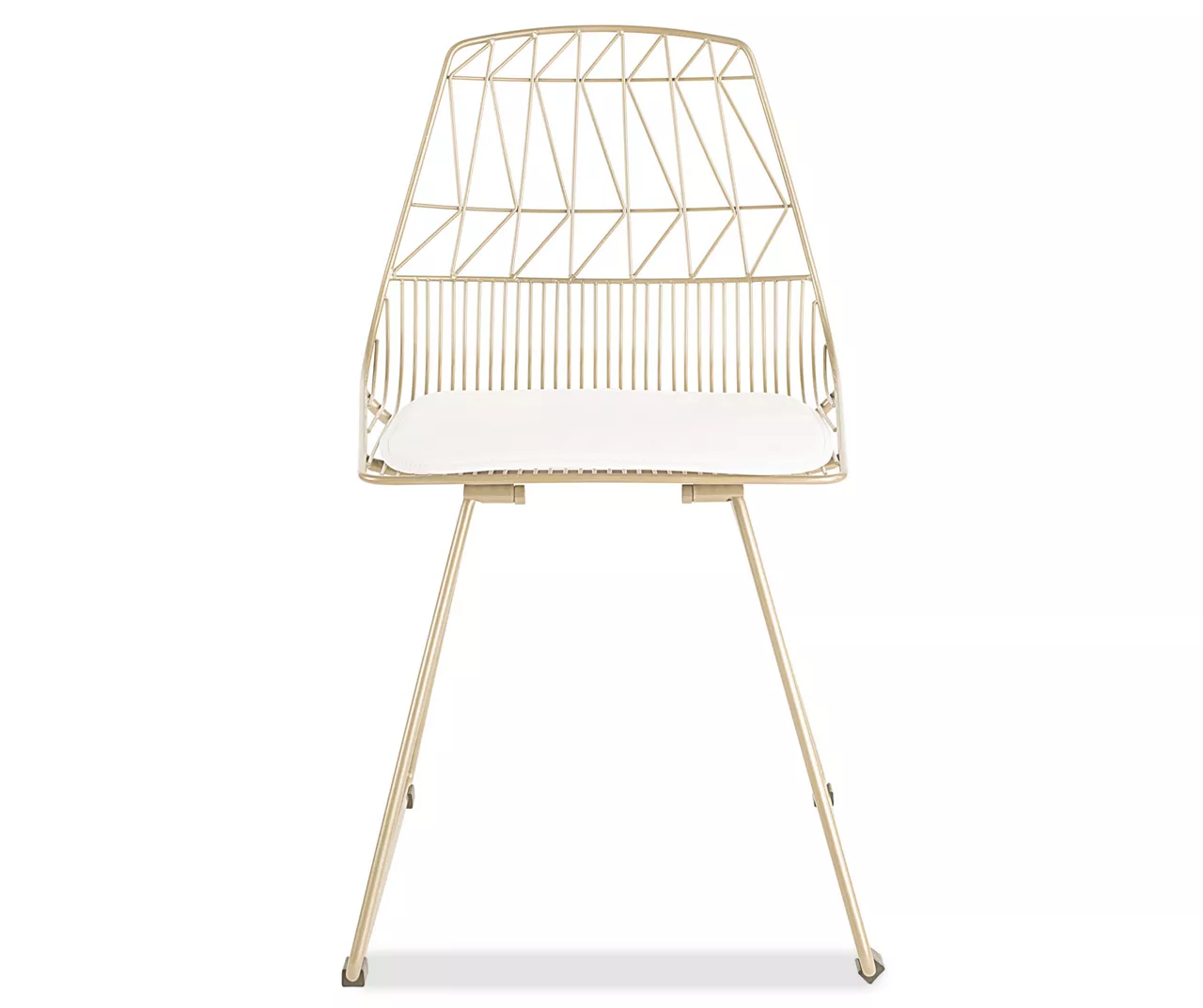 These art deco-inspired metal chairs are perfect for adding major style and zing to smaller spaces. The intricate geometric pattern is distinctive and, well, adorable, while the white padded seat comforts and supports. This set of two chairs is perfect for adding to a breakfast nook or dining room table.