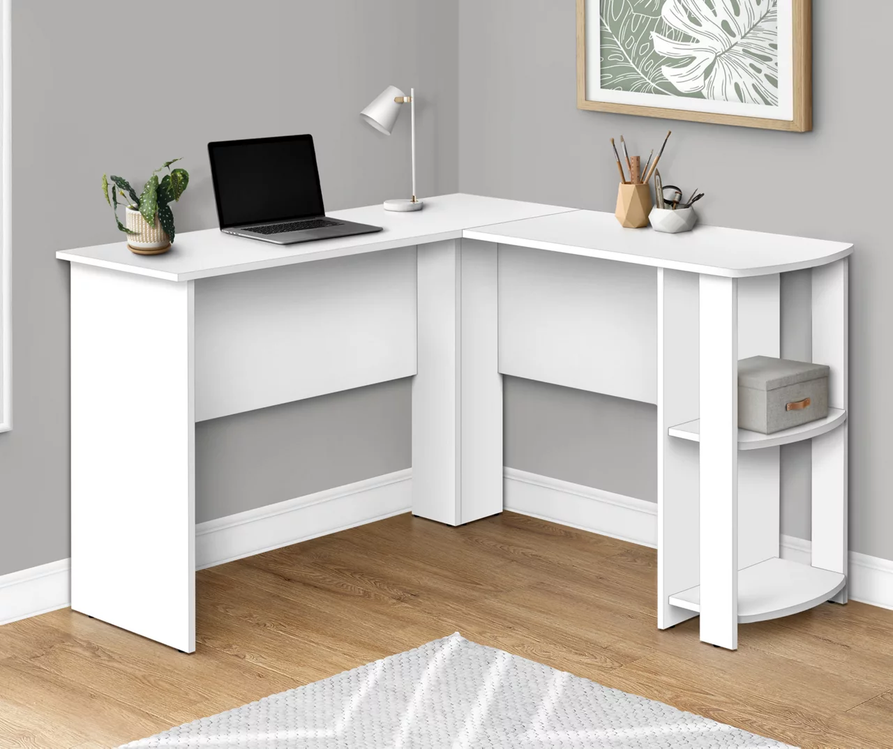 White L-Shaped Corner Desk With Open Storage